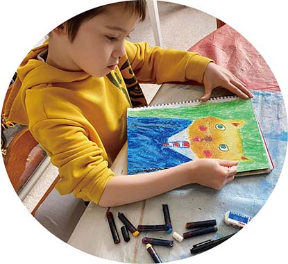 Osberht who is 8 years old loves to draw with his wild imagination, using different media and working in a "naïve" style. Osberht's creative expression from the untrained skills shows the natural beauty, emotion and pure conceptual ideas.
